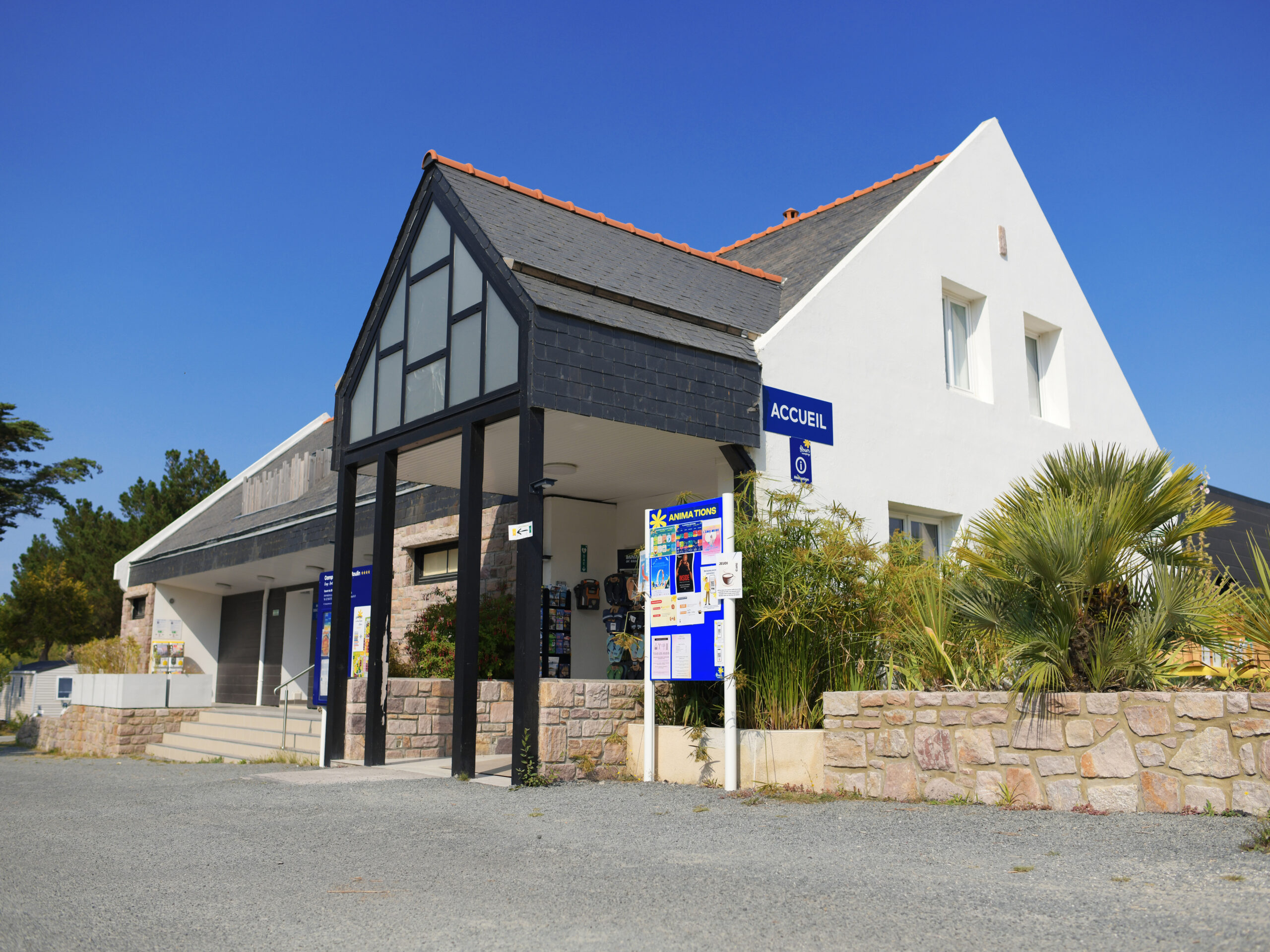 Notre point d’accueil, ouvert de 9h-12h30 puis de 14h30-19h, se trouve à l’entrée du camping. Vous y trouverez toutes les informations nécessaires pour passer un séjour agréable : brochures touristiques, programme des animations locales et du camping, ainsi que des équipements en prêt ou à la location. Toute notre équipe sera ravie de vous aider à rendre vos vacances en camping les plus agréables. Envie de préparer vos vacances en mobil-homes en avance et de rester connecté à nos actualités ?