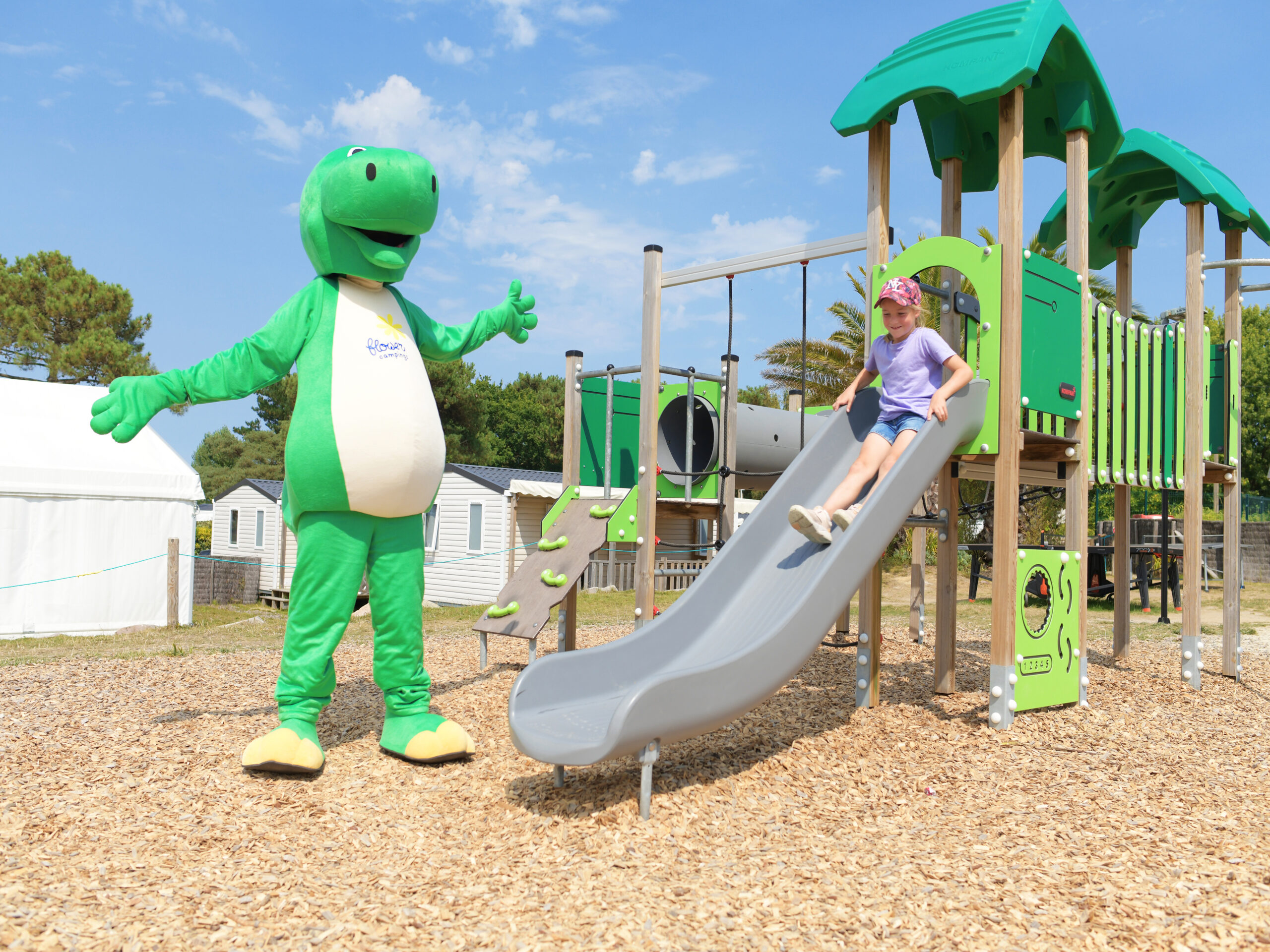 Notre aire de jeux pour enfants offre un espace idéal pour s’amuser et se dépenser. Elle comprend un toboggan pour des descentes rapides et un mur à escalader où les enfants peuvent tester leur force et leur agilité. Des cabanes en bois sont réparties ici et là, servant de refuges et de lieux de jeux imaginatifs. Les parents peuvent s’asseoir sur les bancs tout autour, en veillant sur leurs enfants tout en profitant de moments de détente. Ce lieu est parfait pour les rencontres, les rires et l’exploration, permettant aux enfants de se faire de nouveaux copains tout en pratiquant des activités physiques en plein air et en profitant de l’air frais des Côtes-d’Armor.